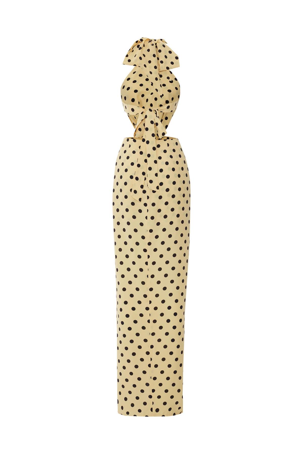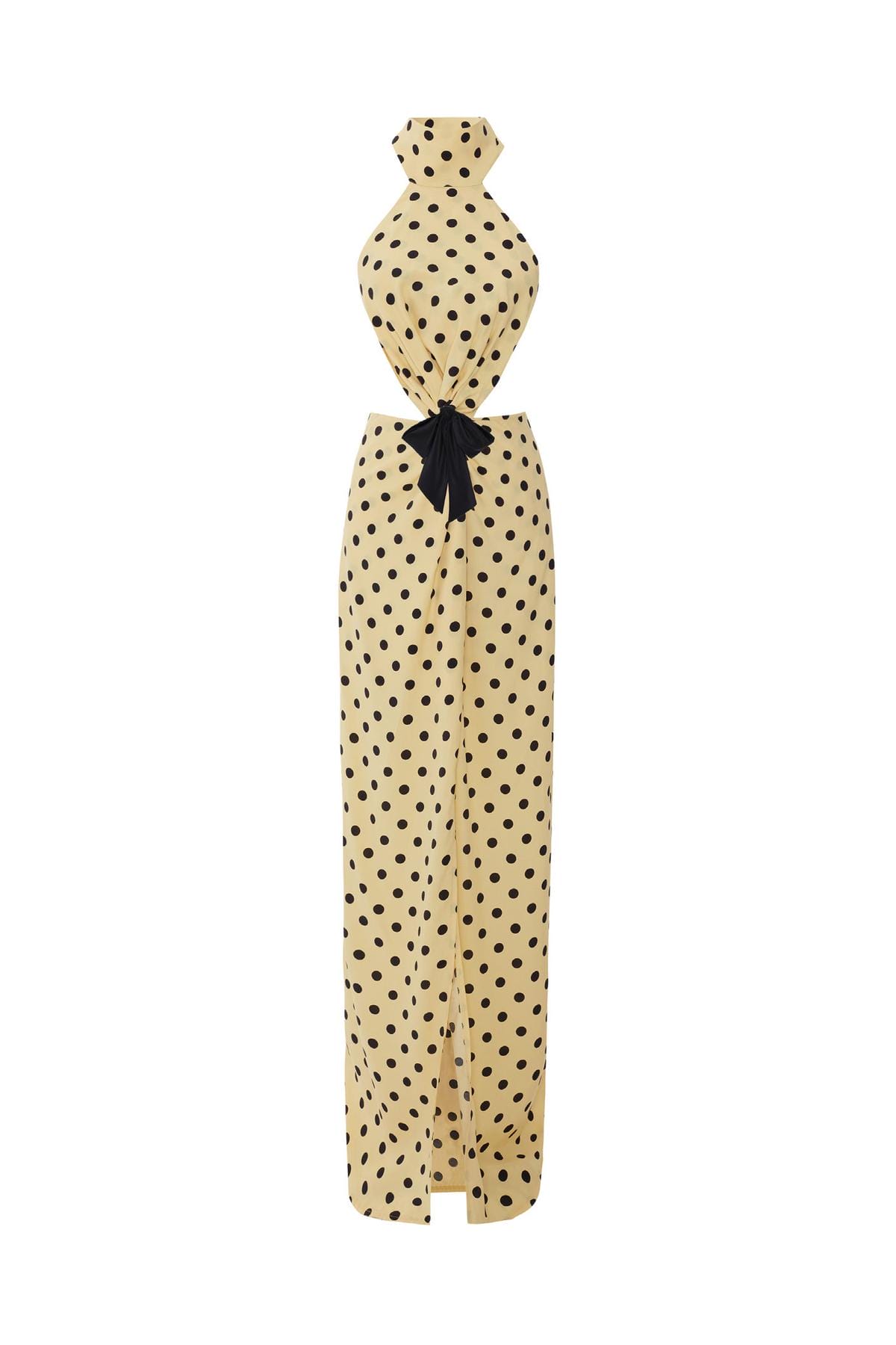 Cut Out Maxi Polka Dot Dress with Bow Detail and Deep Slits