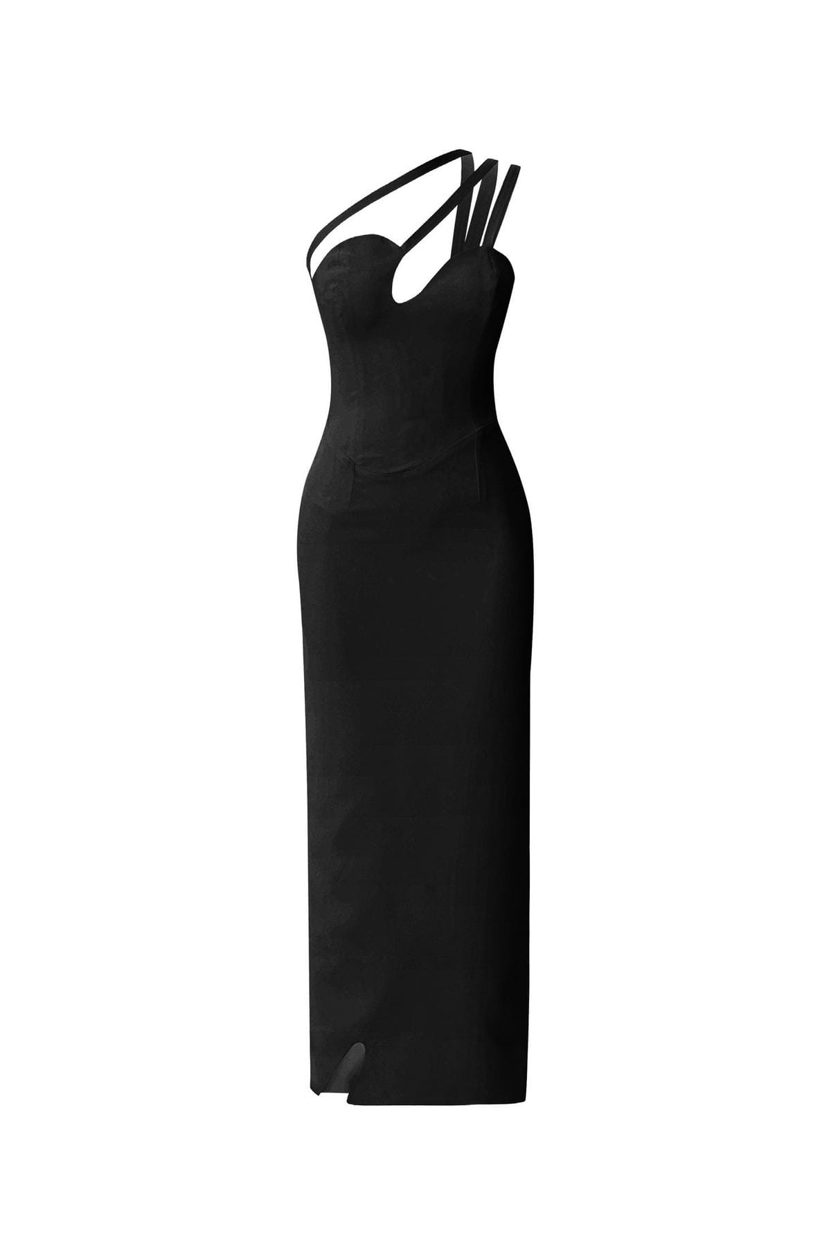 Black Midi Dress with Asymmetric Strap Detail 11,500.00TL /Sale