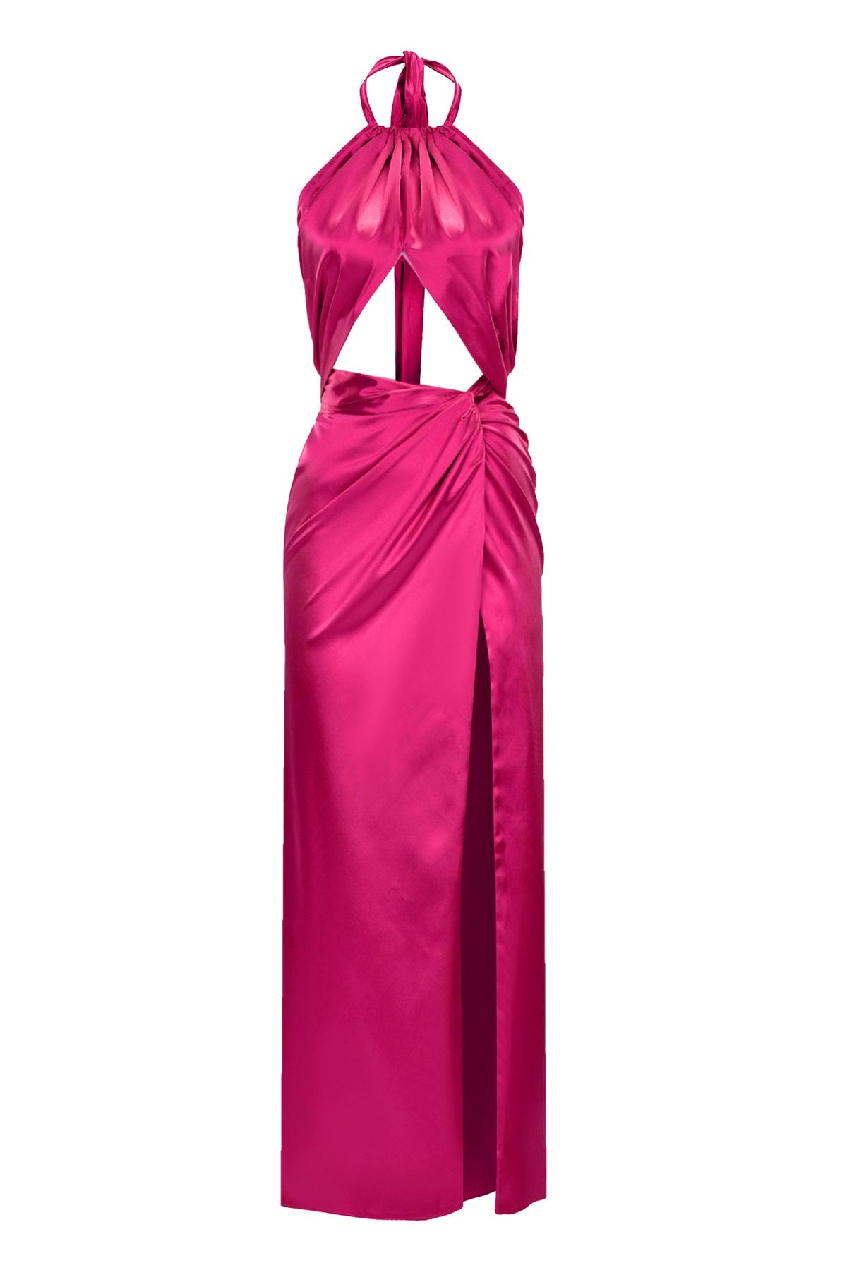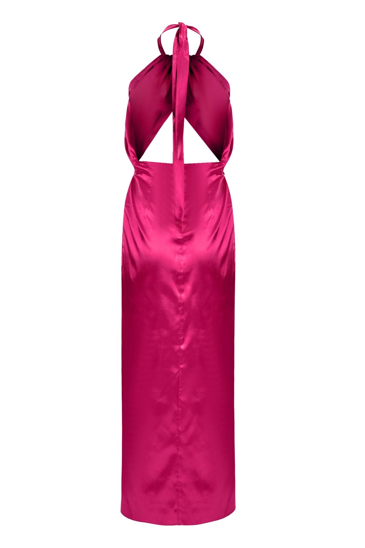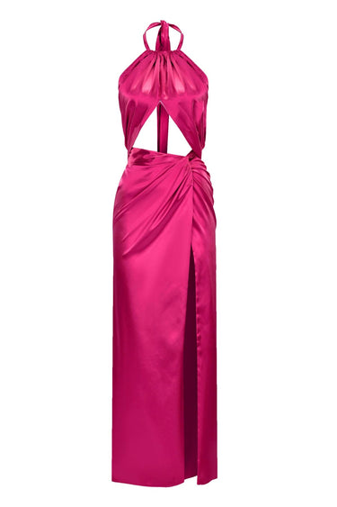 ISLA Fuchsia Satin Midi Dress with Cutout Detail