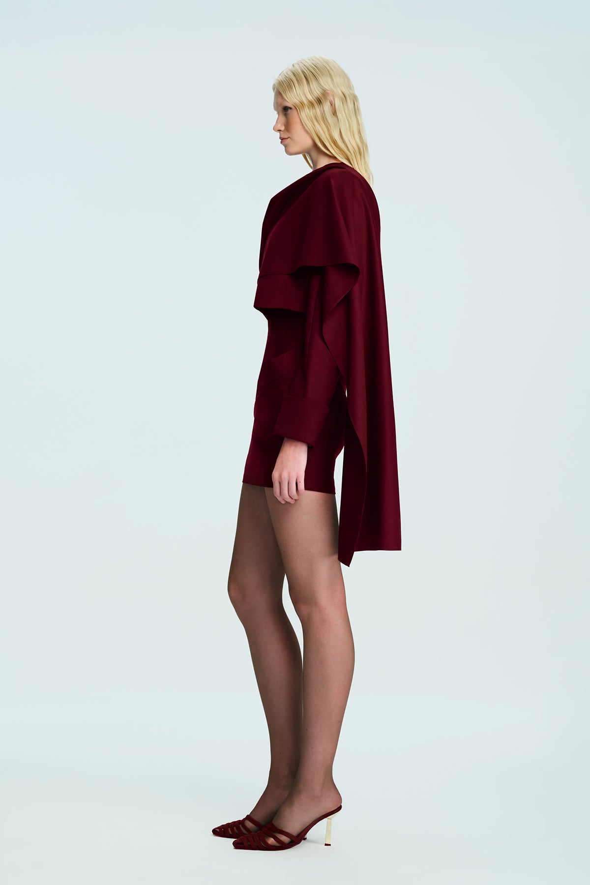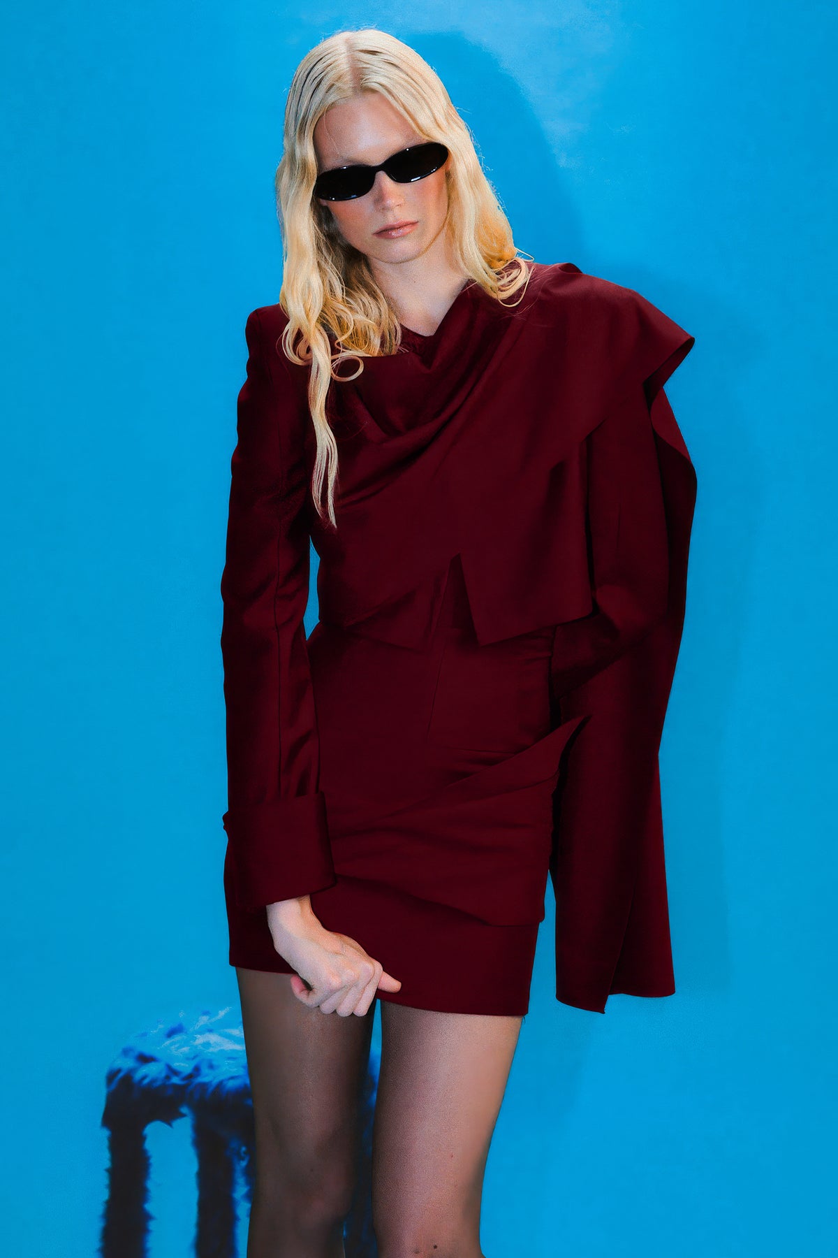 KAIA Bordeaux Asymmetric Draped Detailed Jacket