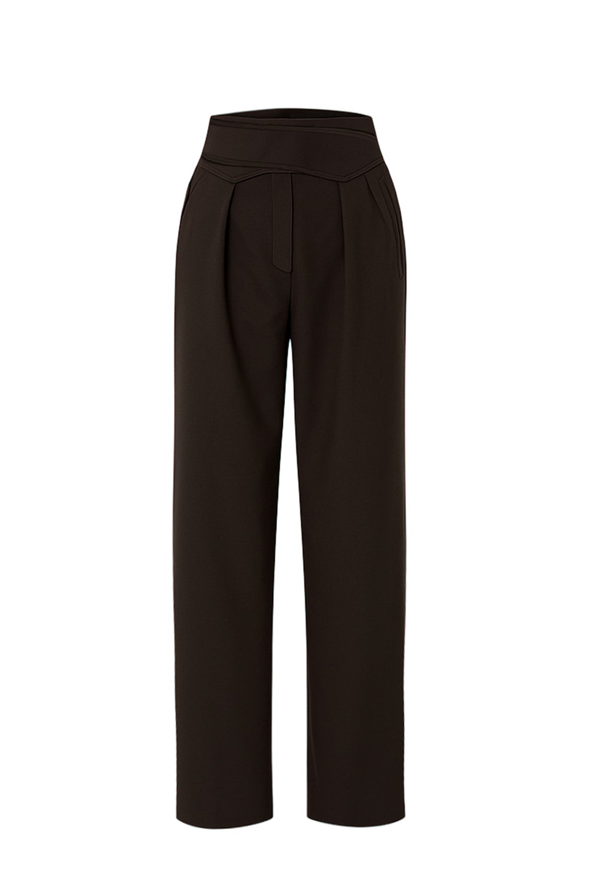 A bold reflection of modern elegance. High-waisted trousers create a powerful presence with their fabric finish and belt detail. The perfect blend of classic and avant-garde style.