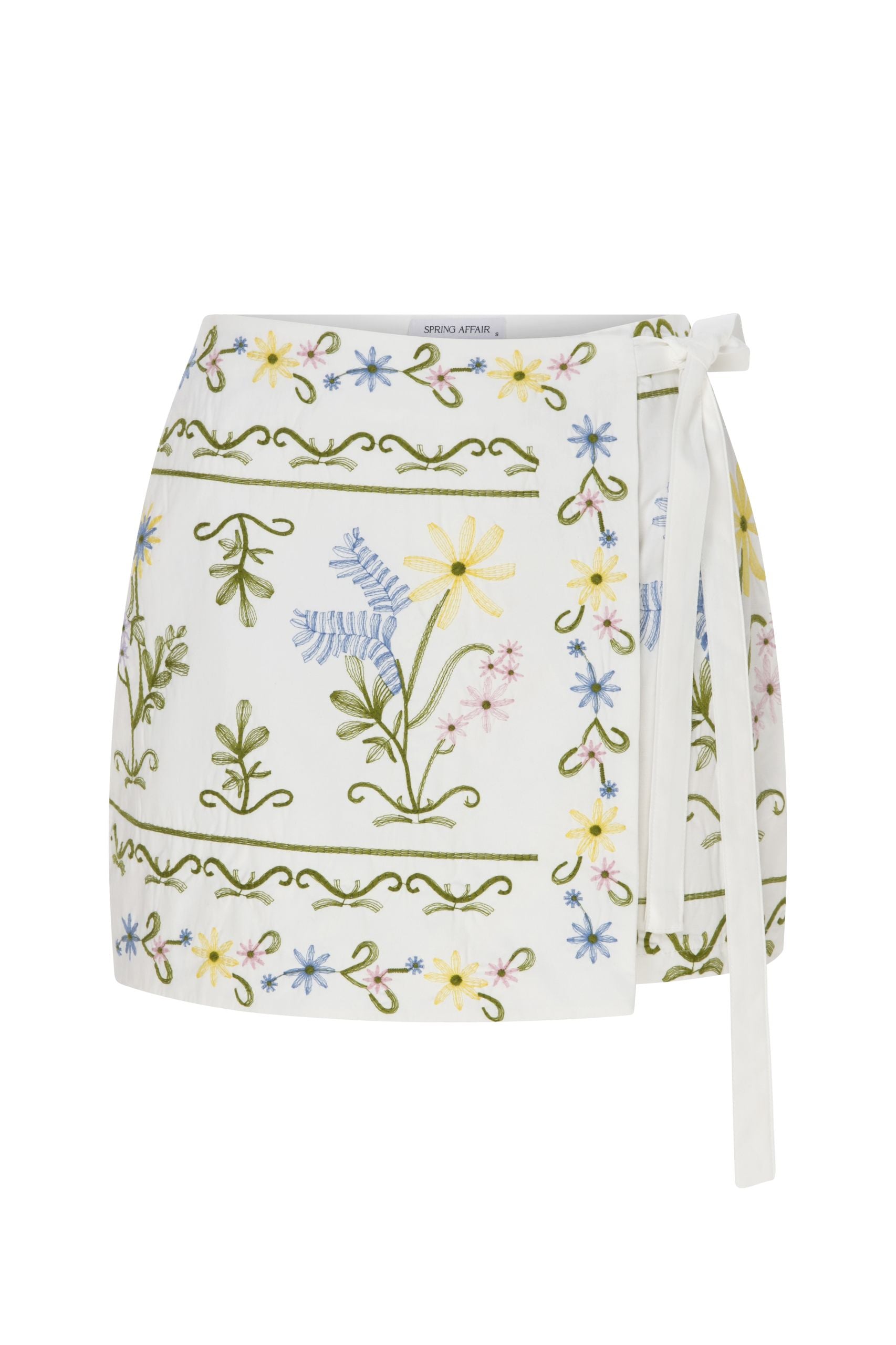 Çiçek Nakış Detaylı Mini Kısa Etek